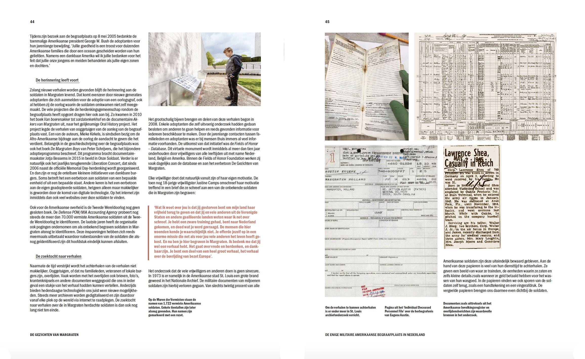 Maar waar de gedenktekens wel de namen vertellen van de veelal jonge jongens die betrokken waren bij onze bevrijding, vertellen zij niet wie de soldaten waren en wie zij achterlieten. Bezoekers vragen zich af hoe oud de soldaten waren als zij tussen de grafstenen lopen. Bovendien verhullen de rust en stilte op de enige Amerikaanse oorlogsbegraafplaats in Nederland de omstandigheden die het einde betekenden van hun toch al roerige levens.