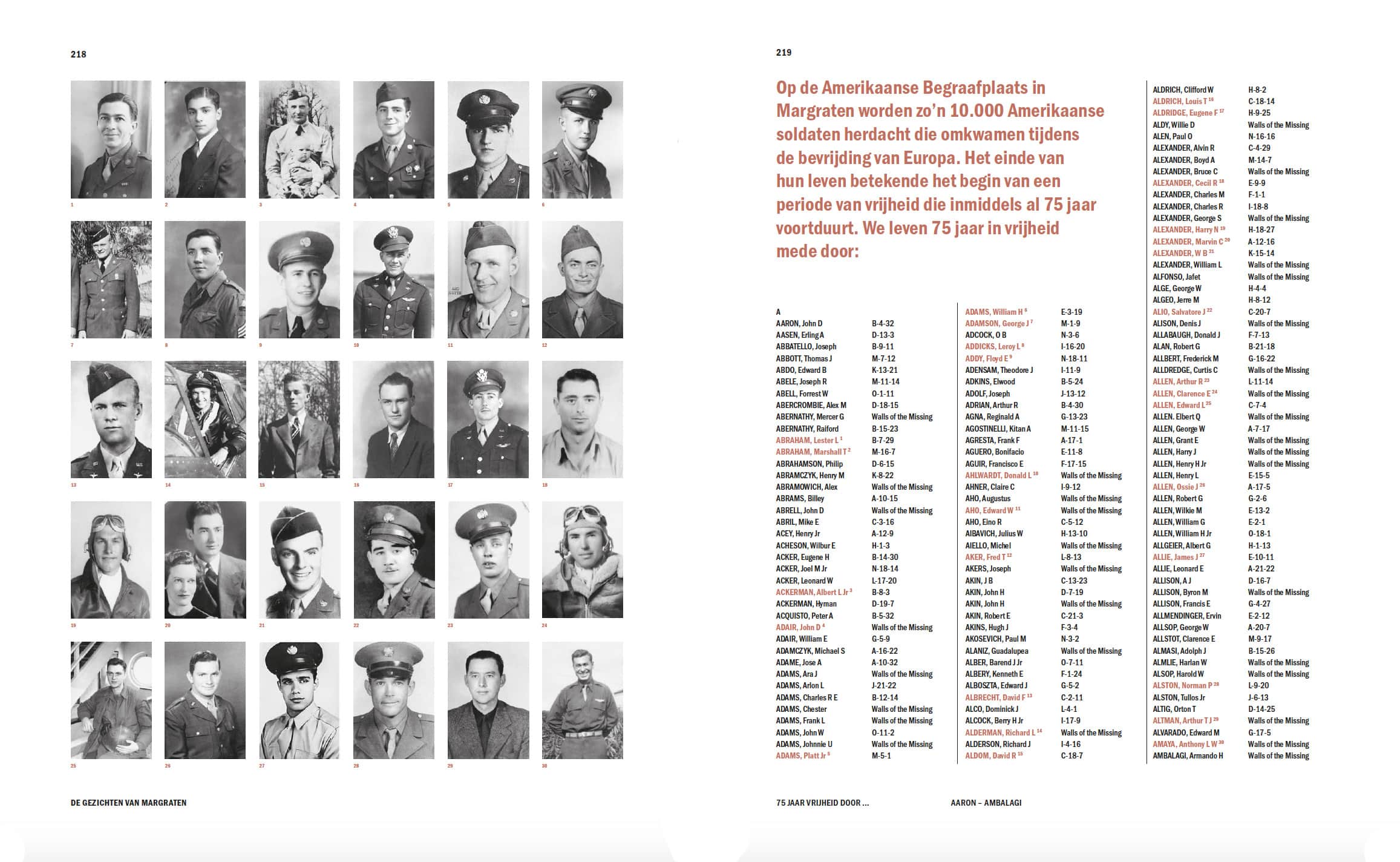Herdenken stopt niet bij 4 en 5 mei. Daarom komt het eerbetoon De Gezichten van Margraten met een herdenkingsboek over de meer dan 10.000 in Margraten begraven en herdachte Amerikaanse soldaten. Het boek is speciaal ter gelegenheid van de viering van 75 jaar vrijheid eenmalig uitgegeven als een permanent eerbetoon. Zo bevat het boek bijna tweehonderd verhalen en honderden gezichten alsmede als een namenlijst van alle gesneuvelden die in Margraten herdacht worden. Het boek is een monument op papier dat thuishoort op de koffietafel en/of dat prijkt als verzamelstuk in de boekenkast als een subtiele dagelijkse herinnering aan wie het leven lieten voor de vrijheid.