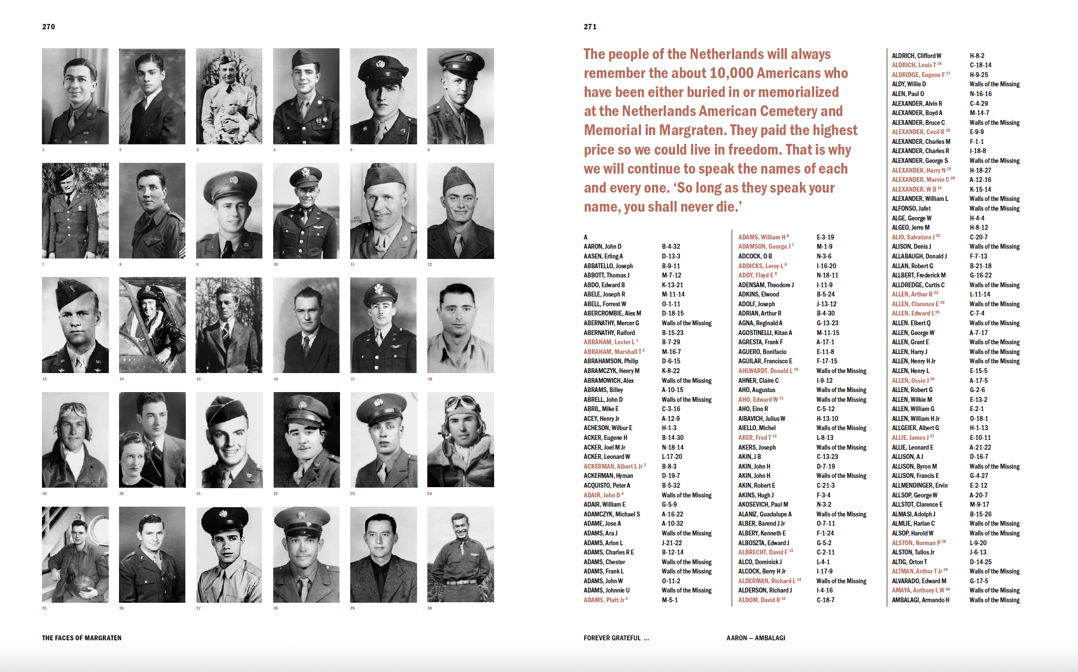 Using hundreds of personal photographs and more than a hundred stories, The Faces of Margraten gives these soldiers a face again, especially for the commemoration of 75 years of freedom. The stories guide us through the history of the Second World War and the liberation of the Netherlands, while at the same time painting a picture of how and why the Dutch people still keep their memory alive.
